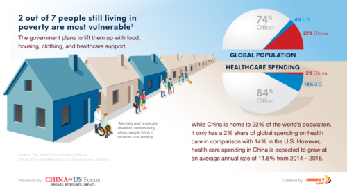 The United States accounts of 14 percent of global healthcare spending. China, home to 22 percent of the world’s population, only accounts for 2 percent of healthcare spending.