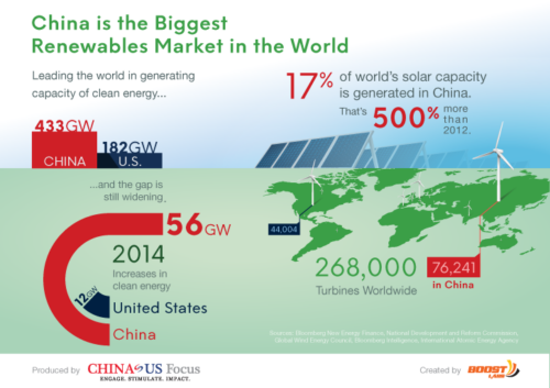 China’s solar energy capacity has grown by 500 percent since 2012.